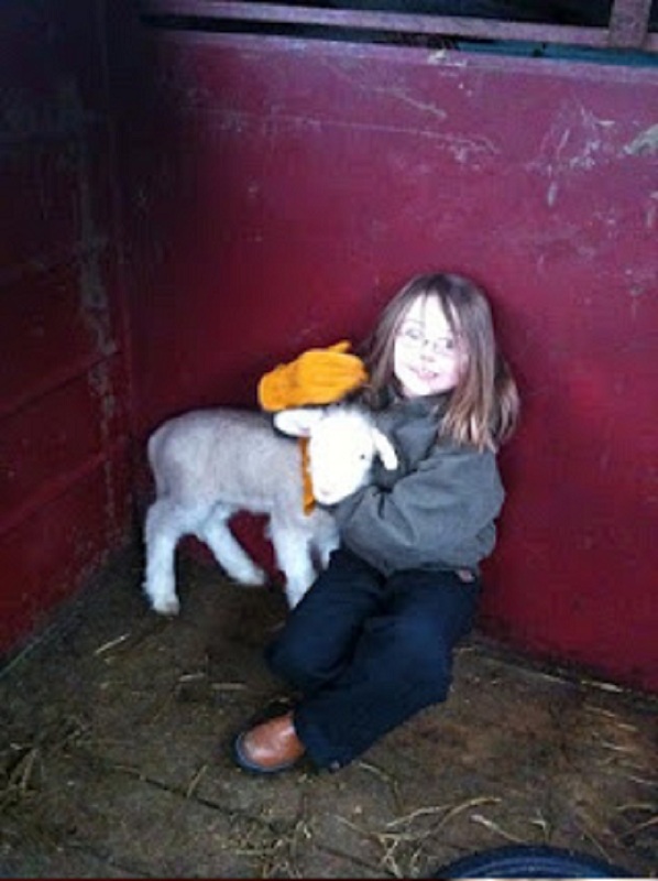 Sunday morning we woke up to the sweetest little lamb cries and then from inside I heard my dad cussing. I wasn’t sure what was going on so I woke Prince Charming up and we got dressed and headed outside. We walked all around and couldn’t find him. It turns out the bull was over on the neighbor’s place so he had to get him back over the fence. Then Tbug had stayed the night with Memaw so we went to pick her up and give Memaw her Valentine’s Day present (from Tbug) and then we ran into town to give Prince Charming’s dad his Valentine’s Day present (from Tbug) and then headed back to the house to band lamb tails and move momma/lambs and expecting around. Prince Charming gave Tbug a bigger lamb to carry and she said she couldn’t. We told her to bring it as far as she could. She told us later, next time she wants a lighter/littler one. She was great help though! Then she went and helped my dad do chores in the barn. We got done with enough time to take her in the house and clean her up and then Prince Charming took her to meet her momma.