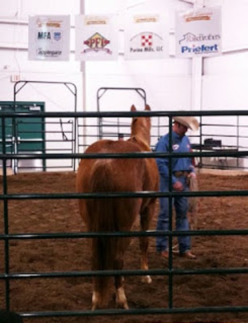 By the end of the hour, he actually had her calmed down where he could sit on her. He said later in the day they’d work on other things but still work on this also. We didn’t attend the session later, we went to watch Stacy Westfall.