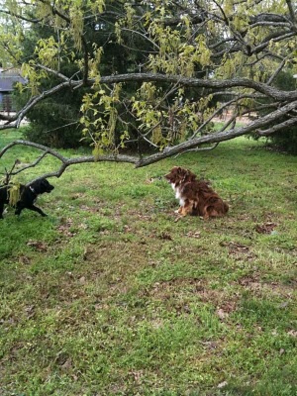 So we brought Bear home and Morelli hates him. Other than Morelli we have Mudflap who is a male also, however, Morelli got his bluff in on Mudflap when he was a puppy. Morelli is half the size of Bear and trying to get his bluff in on Bear. Bear really doesn’t want much to do with any of them. We’ve kept Bear tied up for a couple of days while we’re at work so that he doesn’t run off since Jeff lives so close. I’ve been waking up 2 mornings to Bear barking his head off at 6:15-6:30 am. grrrrr….. (so not a morning person). But other than that, he fits in well.