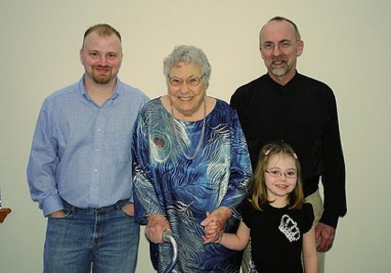 Here’s PC (notice the leg up, still bummed!), his Grandma, his dad, and baby Tbug