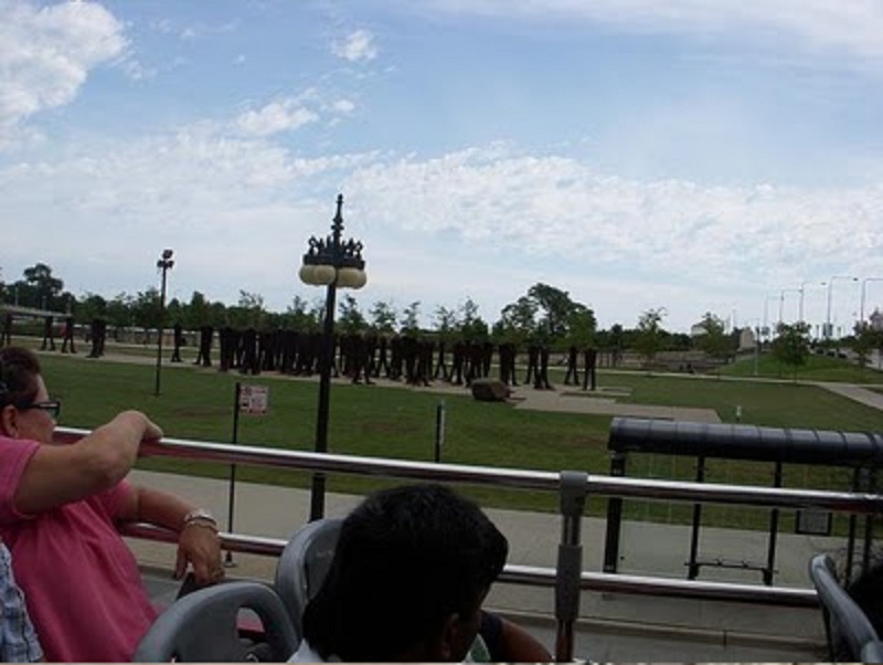 There are 106 9ft tall headless figurines here known as Agora. They are art that was donated by the Polish. Chicago has the largest Polish population in any given city. There is a city ordnance that says dogs are not allowed into this portion of the park because the figurines look like trees.