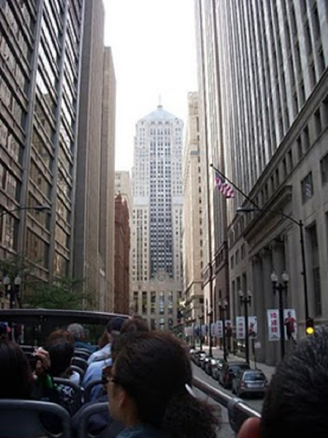 Chicago Board of Trade building (the one at the very end of the road :)) It is the world’s oldest futures and options exchange.