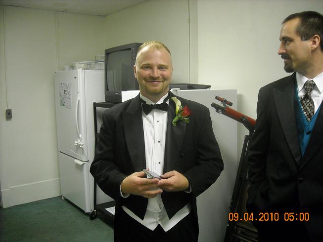 PC wanted a tux with tails. And if that’s what he wanted, I made sure that’s what he got. He got a white vest to go along with that and a black bowtie. My dad was put in a straight black tux with a black bowtie and black vest. We wanted to set them apart from the Groomsmen.