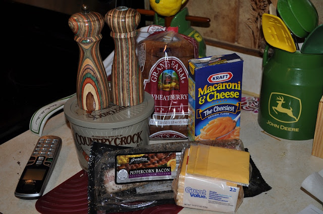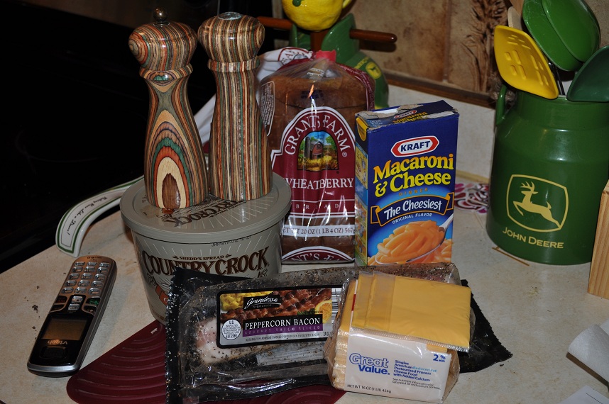 I had bacon I wanted to use up, bread I wanted to use up, Mac & Cheese sounded REALLY good although I didn’t have any milk but luckily I had the back up… Kraft Mac & Cheese in a box which always does in a pinch!!