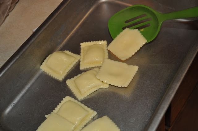 In the mean time start a pot of water to boiling. Once it is boiling, add your ravioli and cook to the directions on the package.