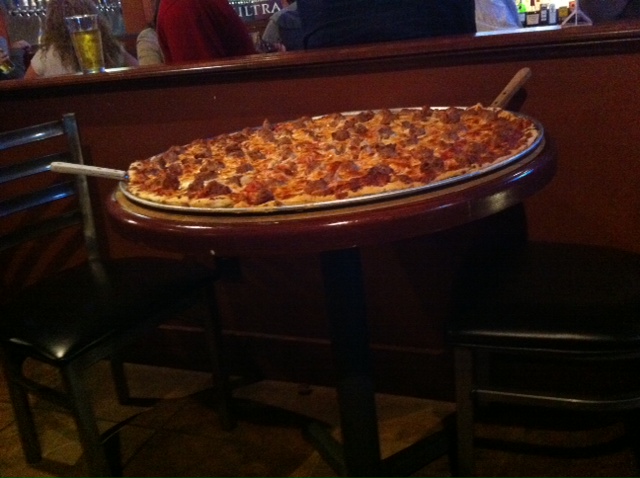 5. Friday night after we picked up Tbug from cheerleading, we met my parents at a local pizza place. The table beside us ordered this pizza. Yes it is sitting on a table that can seat up to 4 people (but really comfortably only 2)
