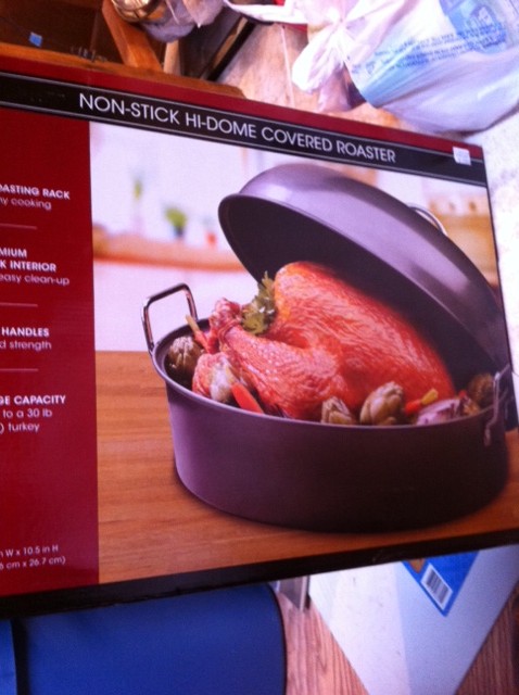 4. One other thing you need to be able to make a turkey…. a roaster. Yeah out of all the kitchen things I have, that was one thing I didn’t have so one weekend we went out shopping. At Kohl’s they had a roaster that didn’t have a lid, it was the Food Network line, I think like $69.99 on sale for either $39.99 or $49.99, I really can’t remember. Well where our Kohl’s is located, it’s near Target & Bed Bath and Beyond so we figured we’d make the trek up to those 2 places to see what we could find. We wound up getting our roaster with a lid from BBaB for $29.99. If we wanted one without a lid, they had a deal going on where you could get one for $9.99 but hubby wanted the lid. I don’t know much about roasters so I went with his decision.
