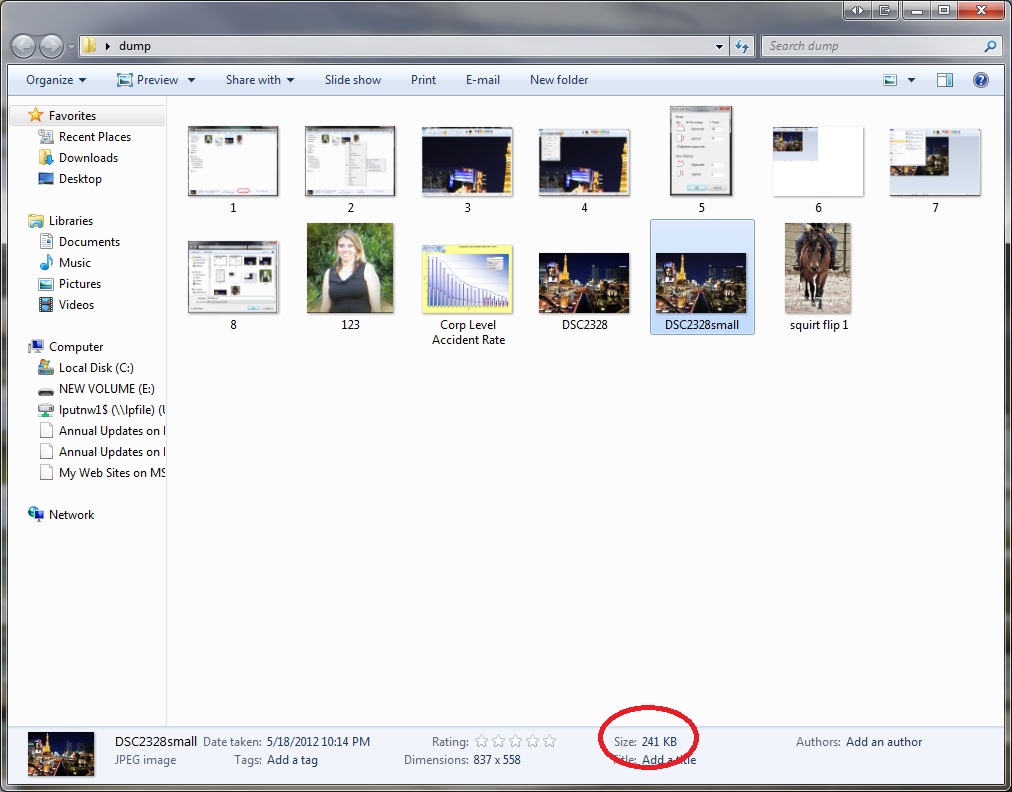 Ok so I’ve chosen a photo to size down. If you’ll notice down at the bottom, I circled the size of this photo. 6.04 MB. Very large! I don’t need a photo that large on my blog.