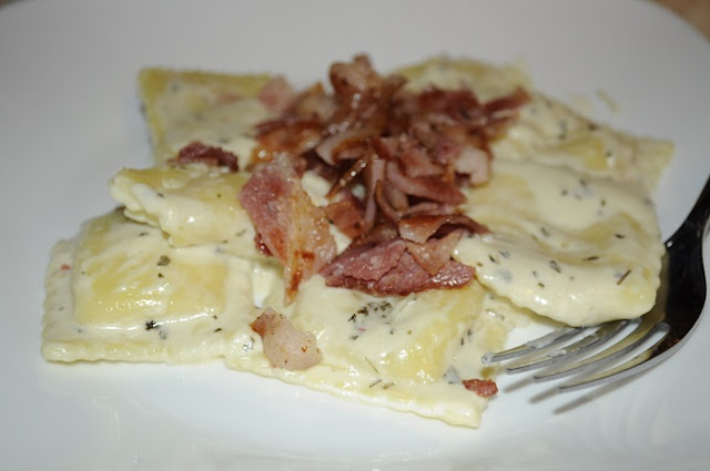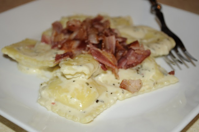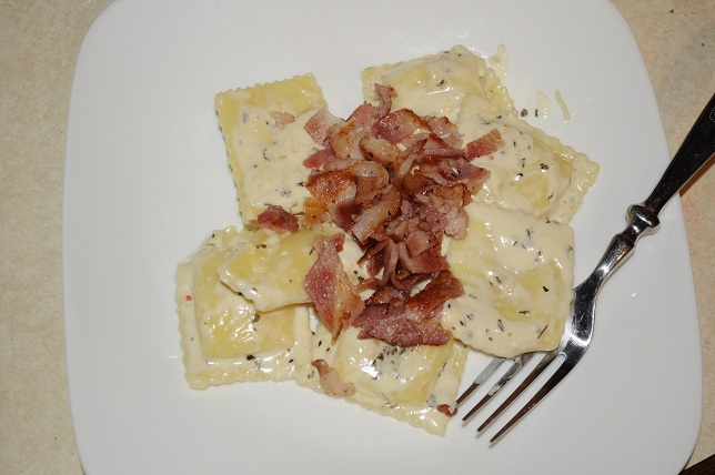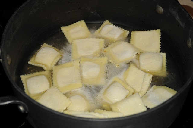 2 tbsp light Italian dressing, 3/4 cup chicken broth in a pot. Add 1(9oz) package refrigerated or frozen cheese ravioli and cook about 5 minutes or until most of the chicken broth has evaporated.