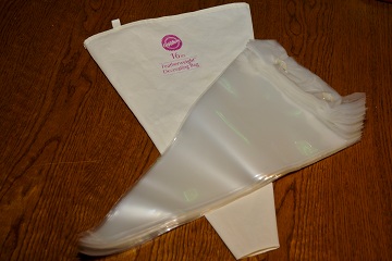 Your next two options happen to be a 16in bag which is great for icing the cake. You’ll need the big tip which I’ll show you in just a bit, but it works miracles when initially icing a cake. One thing though, seems like it uses a bit more icing so you have to be prepared :).