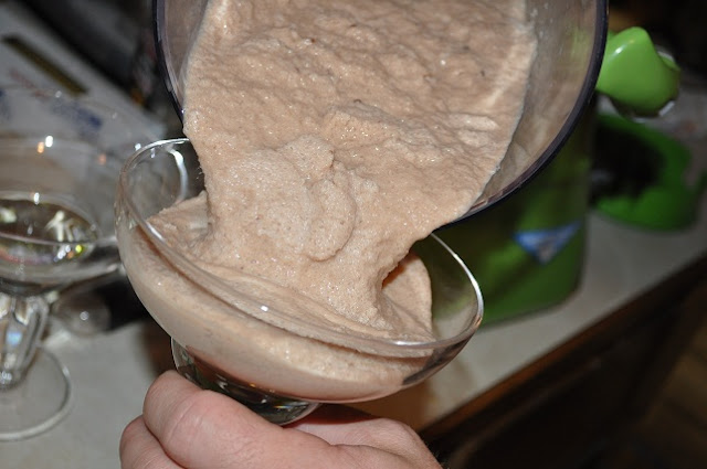 - In a blender place the remaining cup of milk, the room temperature chocolate mixture, and the ice. Blend on high speed until smooth and the consistency of a frozen daiquiri. Pour into a giant goblet and top with whipped cream and chocolate shavings. Enjoy with a spoon or a straw –or both!