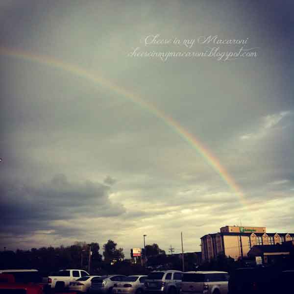 My MIL, hubby, Tbug, my parents and I decided to meet at Jim Bob’s for dinner. If you read my lifestyle blog, you’ll remember that was the same day that Tbug attended her first show, you may also recall it rained the whole day. I’m not complaining, especially when that evening we got the sight of a double rainbow. The second one was too faint and I couldn’t capture it.