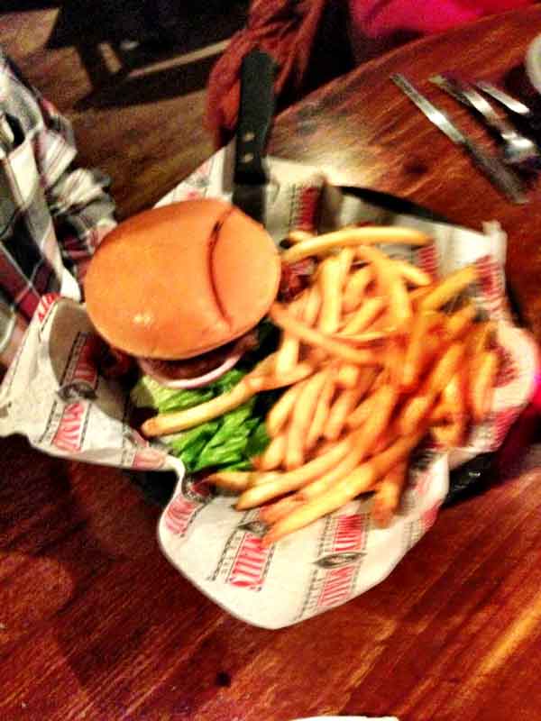 It was fabulous. Yes I stole a bite. It was a good hamburger with all the fix’ns on it. And sometimes the messier the better, but you’ll learn my husband can eat the messiest of food and still stay clean.
