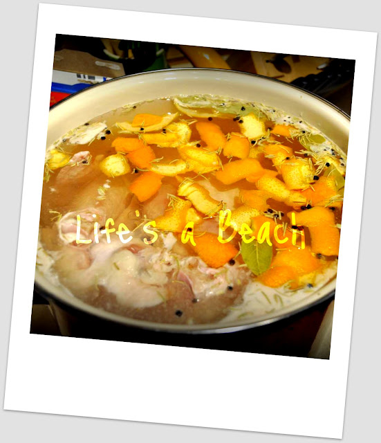3 Oranges, peeled, white pith removed, skin roughly chopped