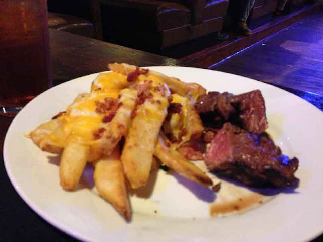 Hubby’s other side was loaded french fries. I’m not going to lie, they were pretty darn good! Part of me almost questioned my green bean choice after I tried some of his fries.