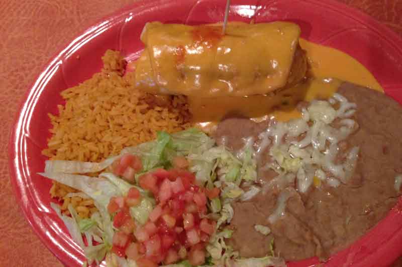 I went with 2 cheese enchiladas covered in cheese sauce double rice (no beans).