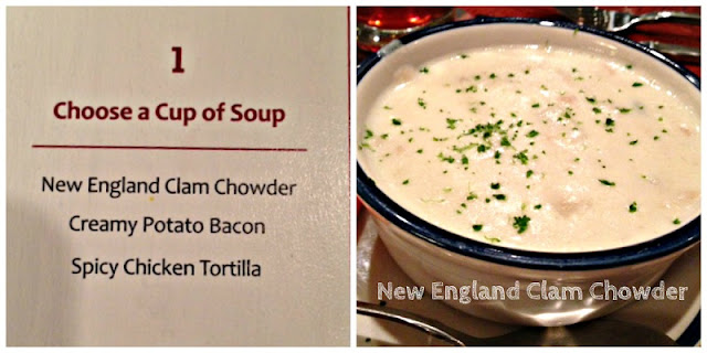It starts off with a cup of soup. I really wanted the Creamy Potato Bacon but she said they didn’t have any that day, so I let my dad have my soup. Hubby and dad both went with the New England Clam Chowder.