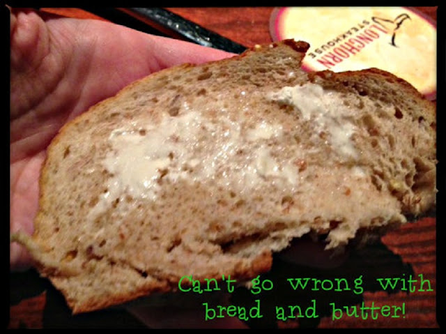 As with the Longhorn in Joplin, you start with unlimited freshly-baked Honey Wheat bread and butter. YUM!