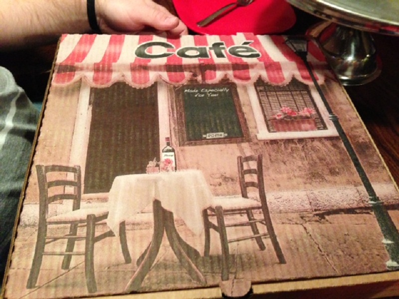We all left, stuffed, with pizza to spare. Look how cute these to-go boxes are. Yup, I loved them! Beats your normal just plain pizza box.