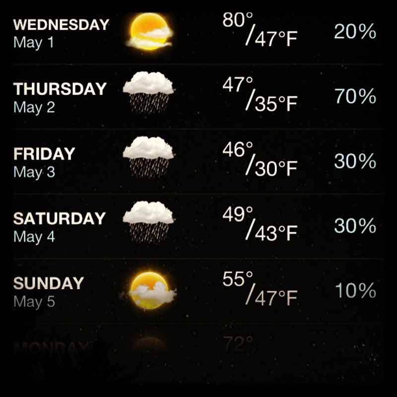 Earlier this week I was checking the weather and this was the forecast. We’ve been having some crazy weather, but I think this might take tops….