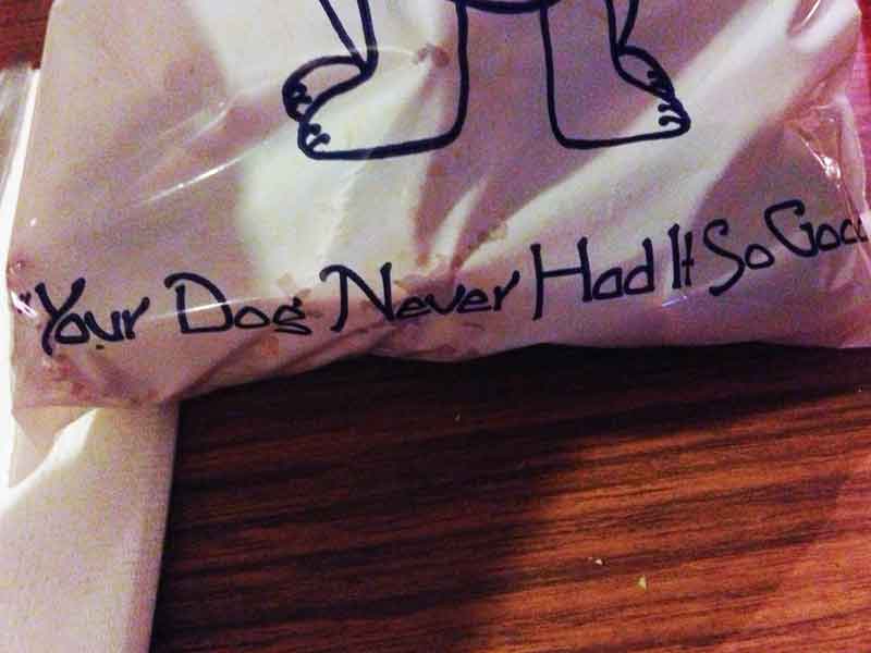 The cool thing though is they don’t forget about the pooches at home either.  They’ll bring you doggie bags for your puppies to get left overs as well.  Our dogs sure enjoy this!