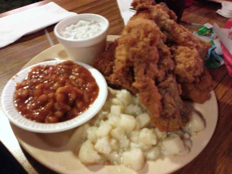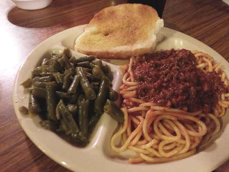 I went with the 1 piece White and asked for a Chicken breast specifically.   I thought I ordered what mom and grandma ordered but somehow I got the option of 3 sides so I don’t know.  I chose German Slaw (although I really meant potato salad, I said it wrong), Spaghetti and green beans.  Holy cow the chicken was soooooo awesome this night, but that’s just what you come to expect when going there.  I ate so much I felt like a walking battle ship when I left, yet there was still stuff left on my plate when I was finished.