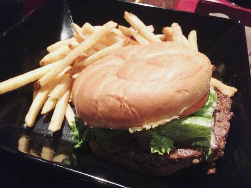 Hubby went for the Mushroom and Swiss burger.  Sauteed mushrooms and Swiss cheese top an all-American beef burger with lettuce and tomato on a toasted brioche-style Kaiser Roll.  He must have liked it because he ate it all 🙂