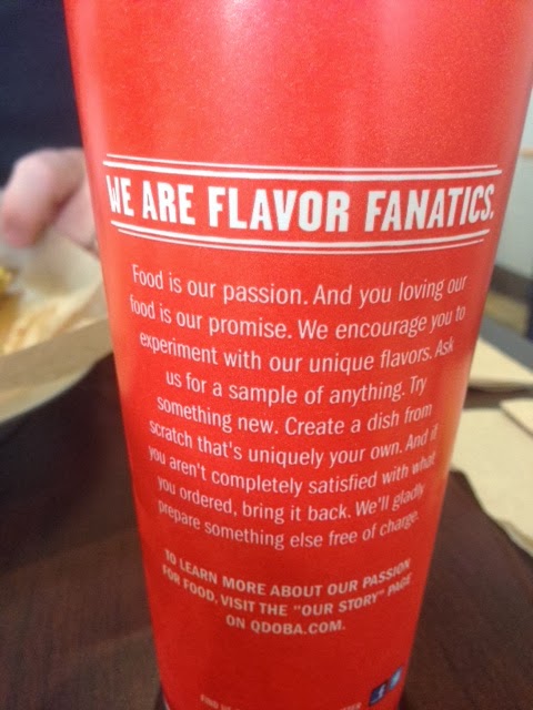 We debated different places to eat and we were still fairly full from breakfast so we decided to go to Qdoba Mexican Grill. We always forget about this place and it cracks me up every time that it is located right next to a weight-loss place :). Ironic?