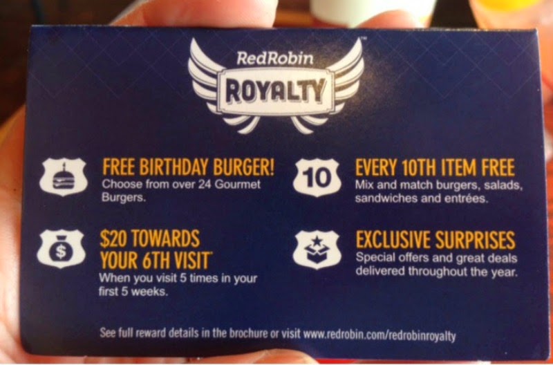 Then when our check came I saw a deal advertising the Red Robin Royalty thing. The waitress asked if we had a rewards card and I said, No, I saw the little flier on the outside and so she said she’d bring us one. She told us all we needed to do was go on line and sign up and we’d be all set to receive the points.