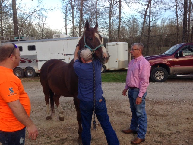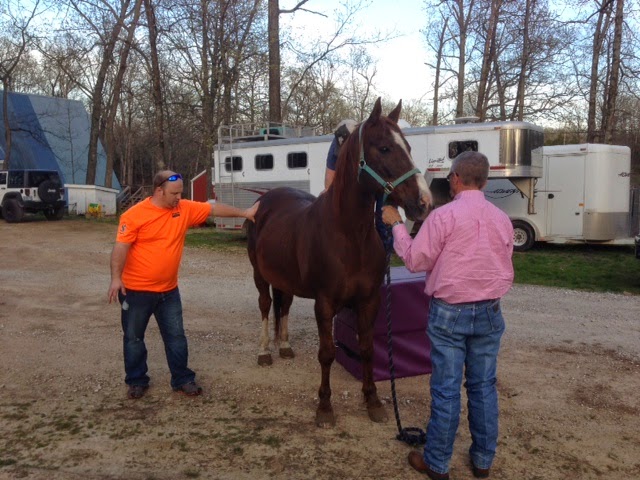 This week dad made an appointment to take him to a Horse Chiropractor/Acupuncturist to see if maybe that was what was making the old man ache so terribly. Friday night was our appointment so we loaded him up in the trailer and headed to the Vet.