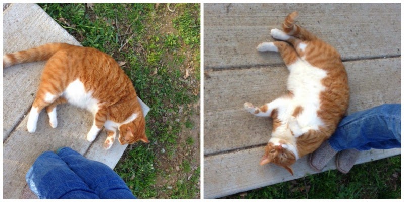 When we got there, dad and hubby unloaded KG. Tbug and I walked off just to the side to stay out of the way and this huge fat cat came to greet us. At one point the cat bit me which made me jump and laugh, apparently we weren’t paying enough attention to him… lol.