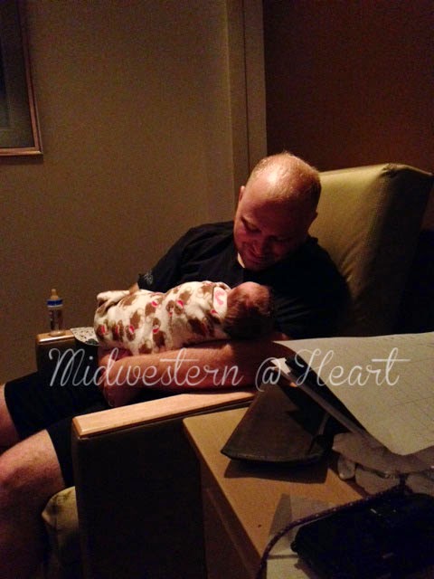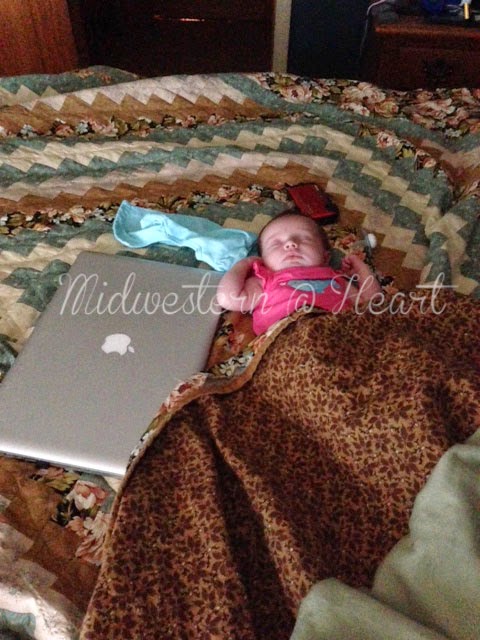 ++Thursday night I fell asleep burping baby girl around 1:30-2am, something like that and woke up at 4 with her still asleep on my chest.