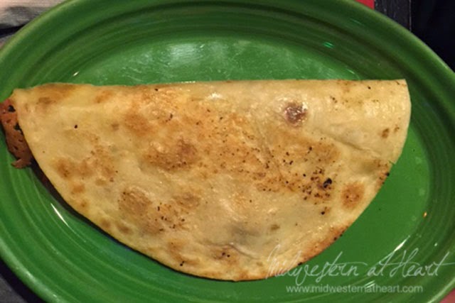 I went with the Quesadilla Sincronizada (grilled flour tortilla layered with chicken, peppers, onions and tomatoes topped with another flour tortilla, cheese and enchilada sauce). OMG this was huge. I only made it through half. It was okay, it wasn’t quite what I thought it was going to be but it was still very yummy.