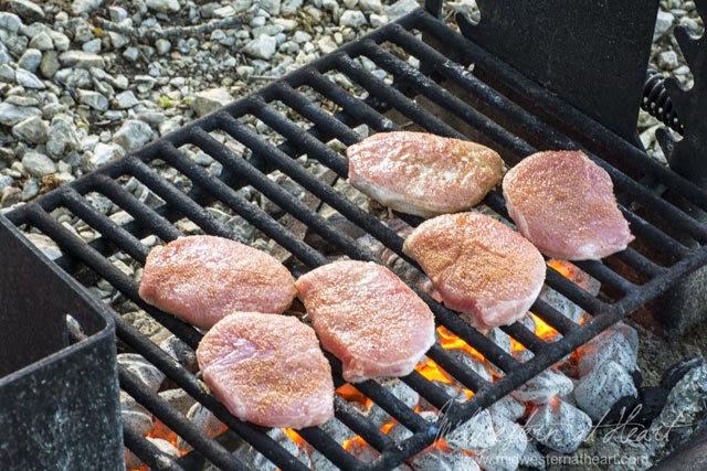 Then she went out to hang out with daddy and grandpa while they cooked the pork chops.