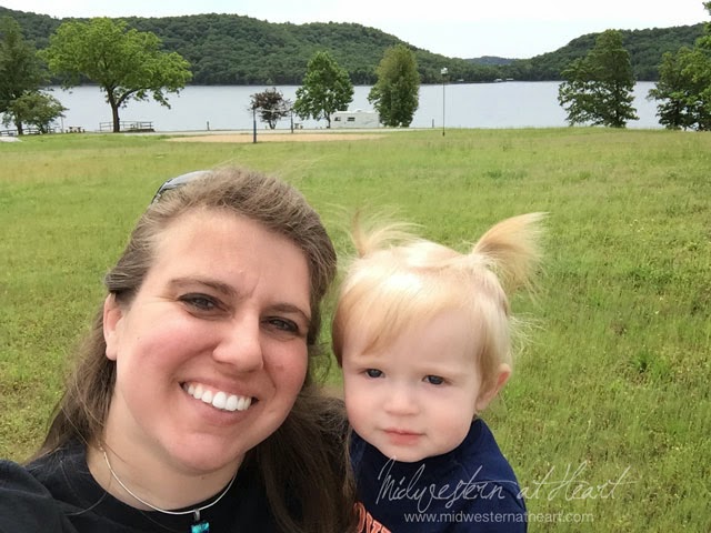 When we got to the lake we had to fill the camper up with water. Then it was time to go park it. Baby girl had never been to the lake so we definitely needed a documentation selfie!