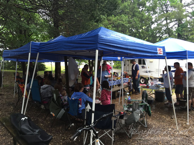 It was great napping weather. Hubby got his in first and then Abug and I went and took one. We woke up and no one was in the camper. My FIL came to pick us up and take us to the other camping sites for dinner. We had every bit of a 2 1/2 hour nap.