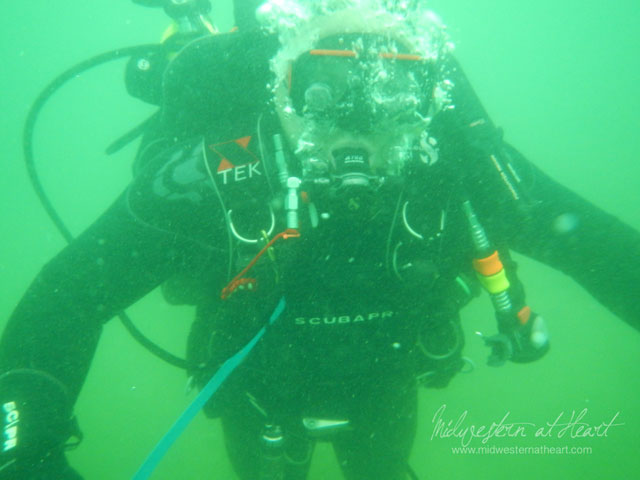 The water temperature at 22 feet was 68 degrees. In my 5 mil wet suit it wasn’t too intolerable. Down below the thermocline sucked though!