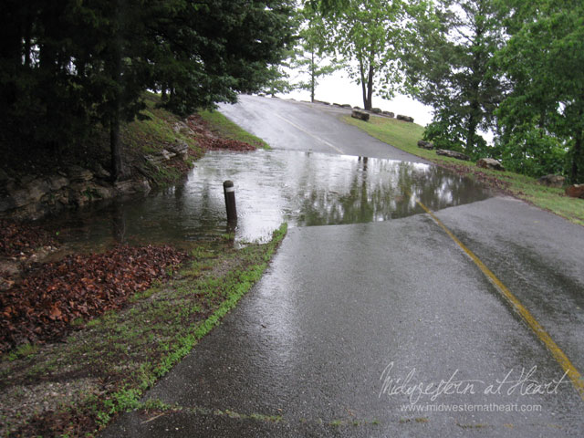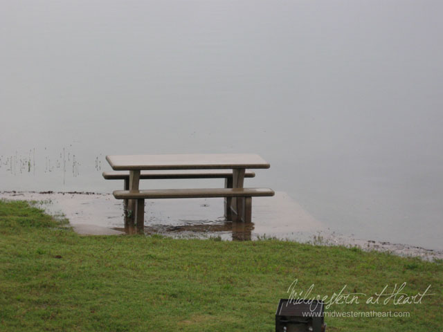 It pretty much rained all day Sunday. Every so often we’d get a break but for the most part it poured and the water levels of the lake rose.