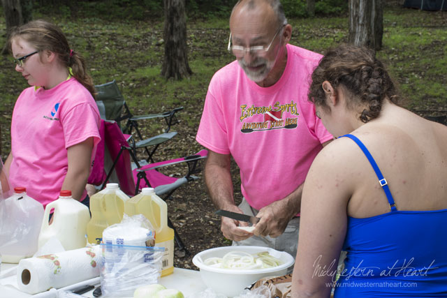 Then it was time to go back to the campers, gather up what we needed, head to Dan/Carlene & Deb/Grady’s area and cook dinner. We had suzie q’s, Dan’s Chicken, lots of sides and homemade ice cream. Deb’s birthday was Sunday but we decided to celebrate her birthday on Saturday night as most people would be there that day.