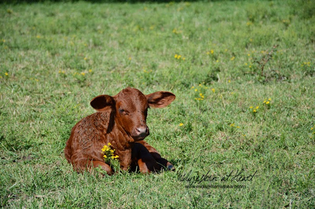 But we have Santa Gertrudis. The other night dad and I were sitting in the truck waiting for hubby to finish up baling the last row of hay up so we could move on to the next pasture and I thought, I wonder why Gerts. In fact, the fields we were baling, the guy is trying to get in the Gert business so it was a good opportunity to strike up a conversation on why we had Gerts. So this is my dad’s response to my question, Why Gerts (Santa Gertrudis)?
