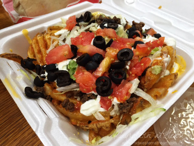 A new item on their menu is the Waffle Fry Nachos. Our friend Jared raved about them so we definitely had to give them a chance. I sure hope Chris keeps this item because hello yum. It was basically nachos on waffle fries. Abug gave her seal of approval on these as well. Hubby and I did too ;).