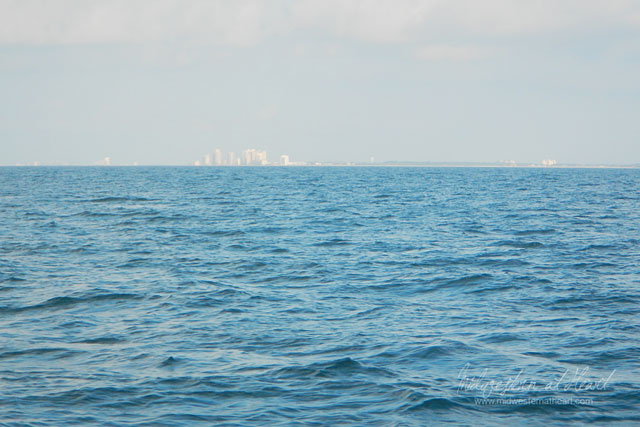 Fun story, going out I was on this side, dad was in the middle and Tbug was on the right. (as you’re looking at this picture). Eventually while we were out Captain took us another 2 1/2 miles out so the three of us piled on the seat in front. This time Tbug and I switched places. I got SOAKED! Water kept splashing up over the side and just totally soaked me. Just me. The other 2 got splashes but I got soaked. So I grumbled that I wasn’t sitting there on the way back and reclaimed my seat on the left. Going back, the hour and 20 minute ride in, I got soaked in my original seat. Seriously?
