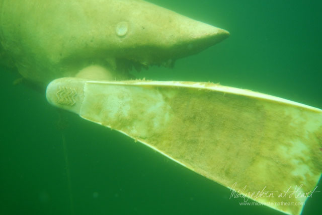 Eventually I had to switch tanks to get more air. The elastic was around my 1st stage reg which hooks to the tank and I couldn’t figure out why it wouldn’t come off the tank. dur da dur, here’s your sign :).