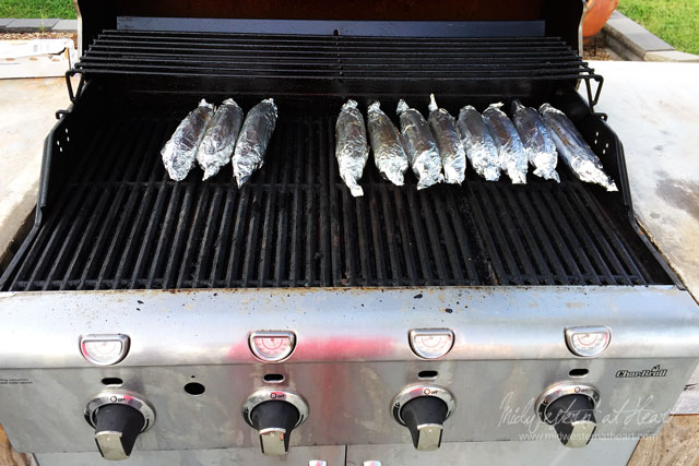 So for one of the sides Deb had corn. Hubby decided to make the Paula Dean corn. You schmear (technical term) it in Mayo, sprinkle with salt and pepper and Chili powder and place on the grill for 10-20 minutes until it’s done and bam, corn on the cob Paula Dean style.