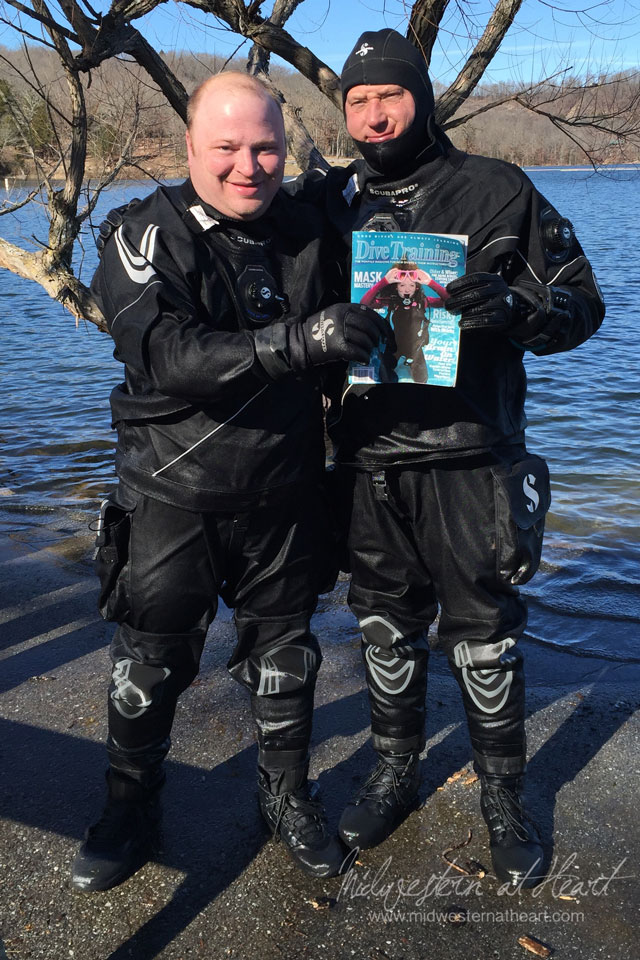 Jared wound up not diving after all of that because he had a bit of a leak in the arm so hubby went diving with Doug. Then we decided to try and take a picture for Dive Training Magazine so I hunted down an issue of Dive Training and we took a second picture. Now I just need to submit the picture. Wish us luck. So far Doug has been in the last 3 issues.