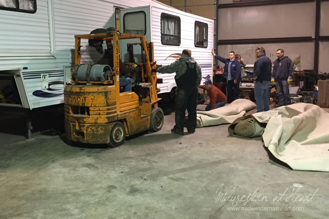 Have you ever taken the slide-out off a camper? Neither had we until Monday night. And Karen teases me that I document everything. Well of course I do. Someday we’ll look back and smile… until then…. well…. there’s a slide out sitting on the shop floor.
