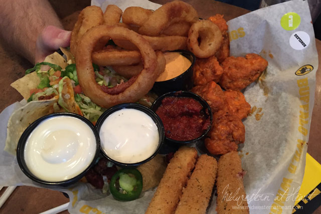So we started by getting a sampler platter. It had Mozzarella sticks, Wings, Onion Rings and Nachos. Then they ordered some fried pickles. SW found some Cheesecake bites on the menu she wanted to try so we ordered a couple orders of them too. By the end of that little stop we were all stuffed.