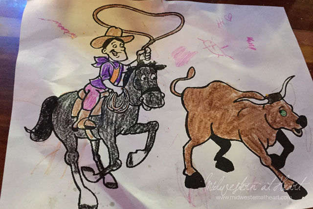 We took one of dad’s saddles to our friend Len to fix and then it was time to head to the horse show that was going on. Dad’s on the board so he makes an appearance plus we like to see what’s going on anyway. Dad bought us lunch at Lucky J (where the show is).