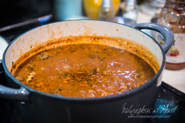 So a couple weeks ago I stumbled across a whole bunch of recipes. One of them happened to be Lasagna soup. I thought, hmmmm I like lasagna, I wonder if this is any good. So that’s what we did… I made lasagna soup and let me tell you, this is friggin awesome and totally worth it! Now it makes a lot of soup so we split the leftovers up in ziplock bags, placed it in the freezer and I’ll tell you this tastes just as good warmed up another night as it does the night I made it. It was so nice that night we pulled it out to already have dinner made when we weren’t sure what we were going to have. So definitely make it all and freeze the leftovers!