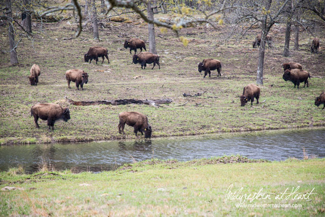 223/365 – The buffalo (bison) were going through camp this morning. As they started back through camp, vehicles were having a standoff with them. It was comical. Then the overseer of the animals called them with a truck horn. They went running.